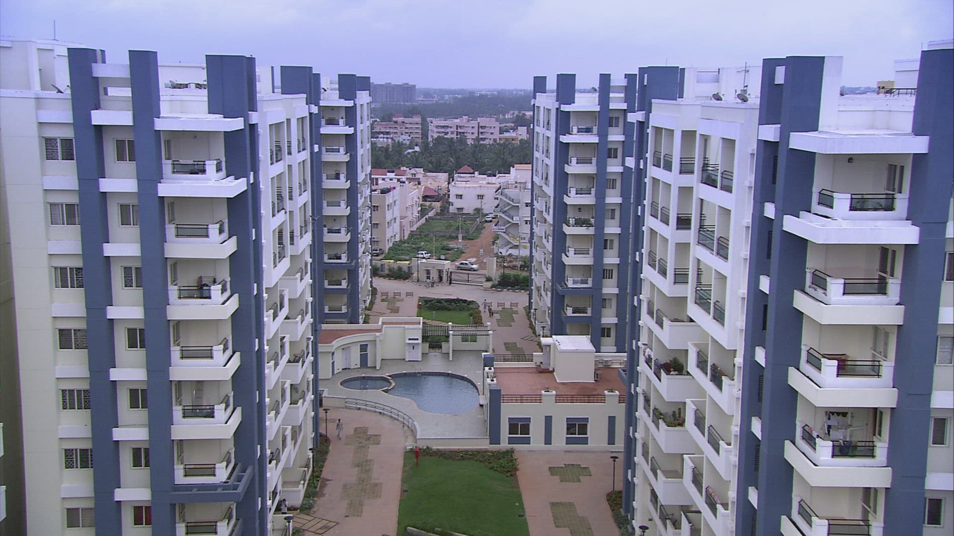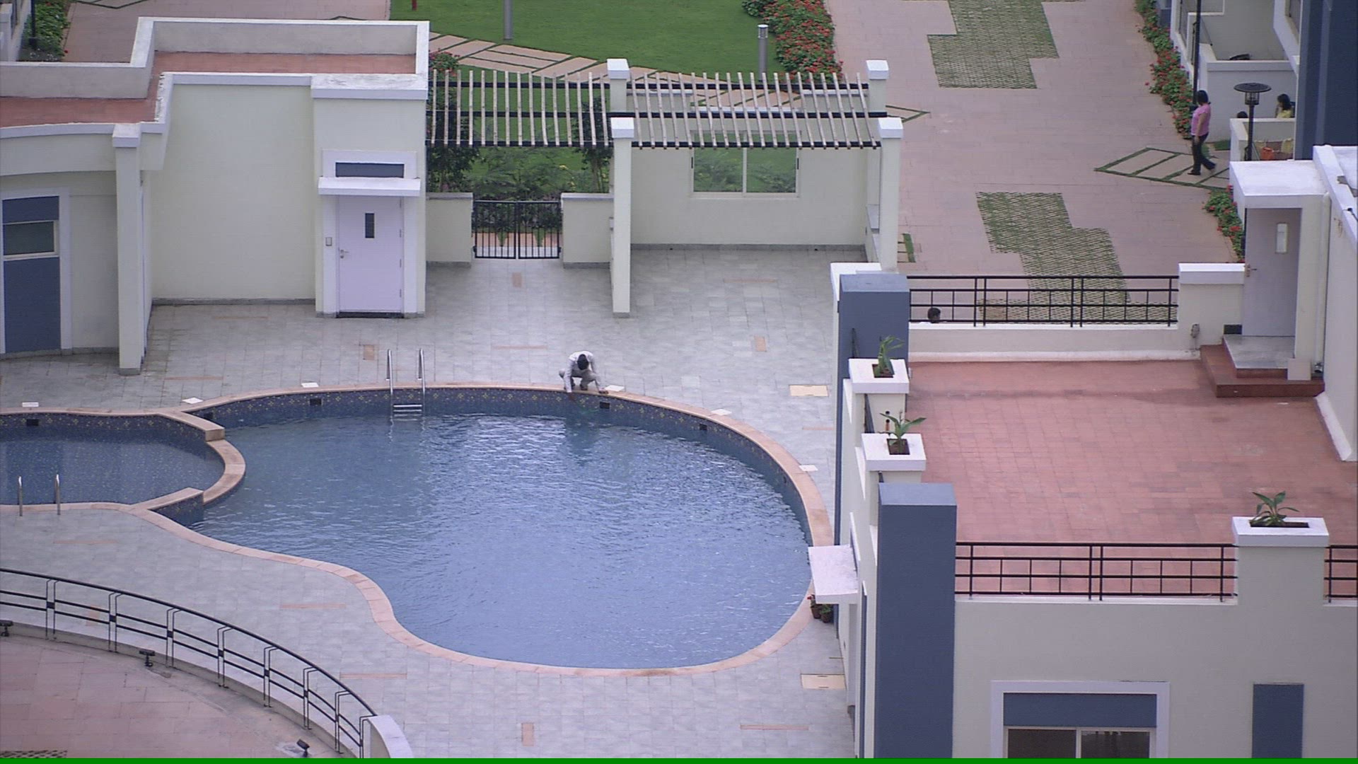 > 1958: a large swimming pool surrounded by apartments or motel rooms NEVADA