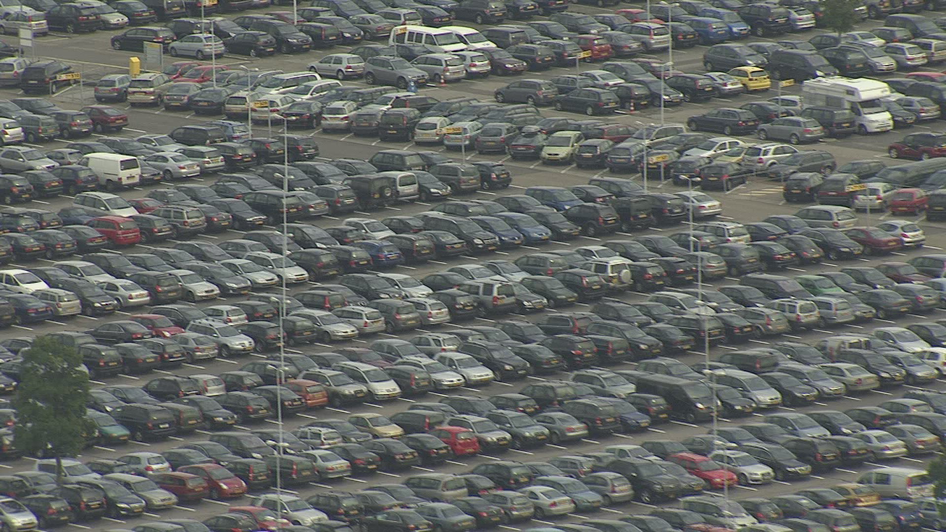 > 1958: a parking lot full of cars set against a large building or resort hotel NEVADA