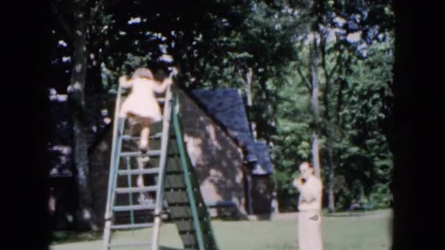 > 1955: little girl climbs ladder to go down playground slide HICKSVILLE, NEW YORK