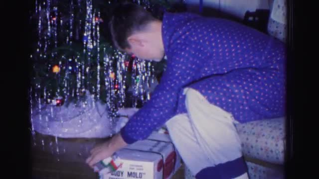 > 1967: a boy is busy with opening the present got for christmas day HAGERSTOWN, MARYLAND