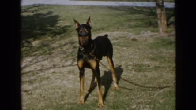 > 1965: a sleek black dog is performing tricks in anticipation of a treat in the backyard HAWAII