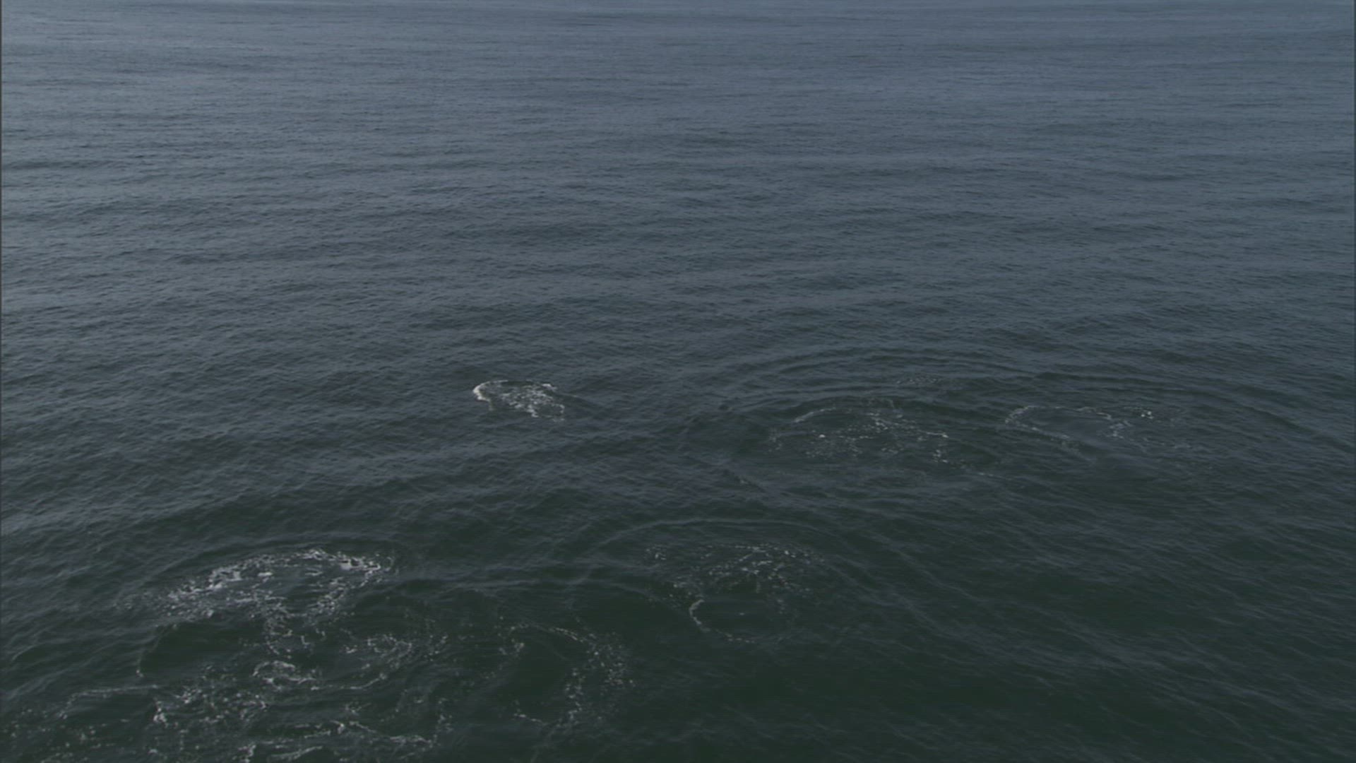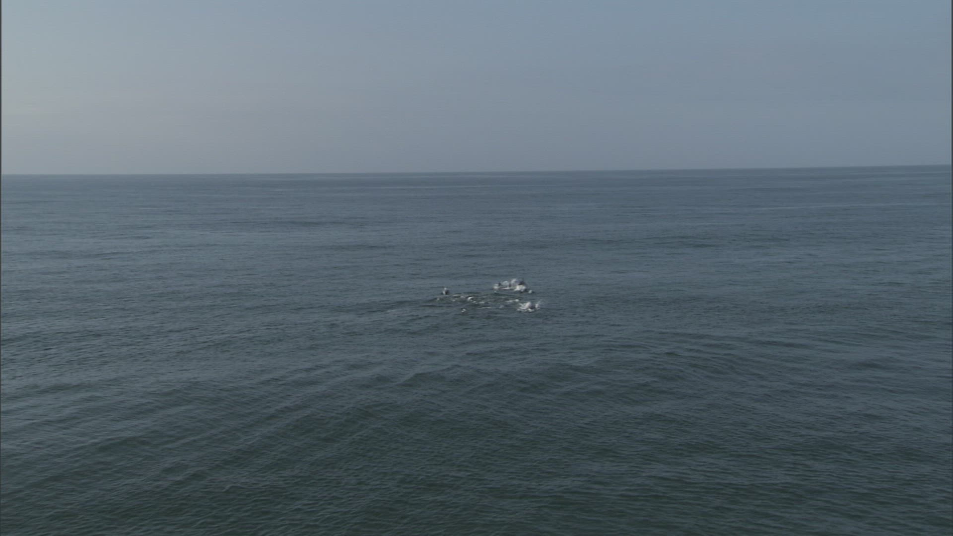 > 1965: a group of dolphins break the surface of the ocean and follow alongside a marine vessel HAWAII