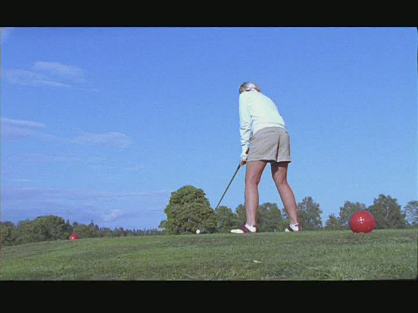 > 1949: a woman in a dress on a golf course hitting a golf ball MINNESOTA