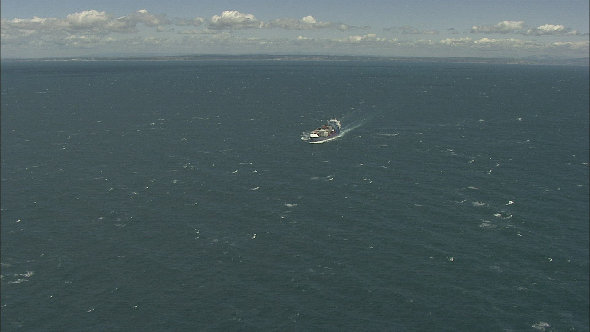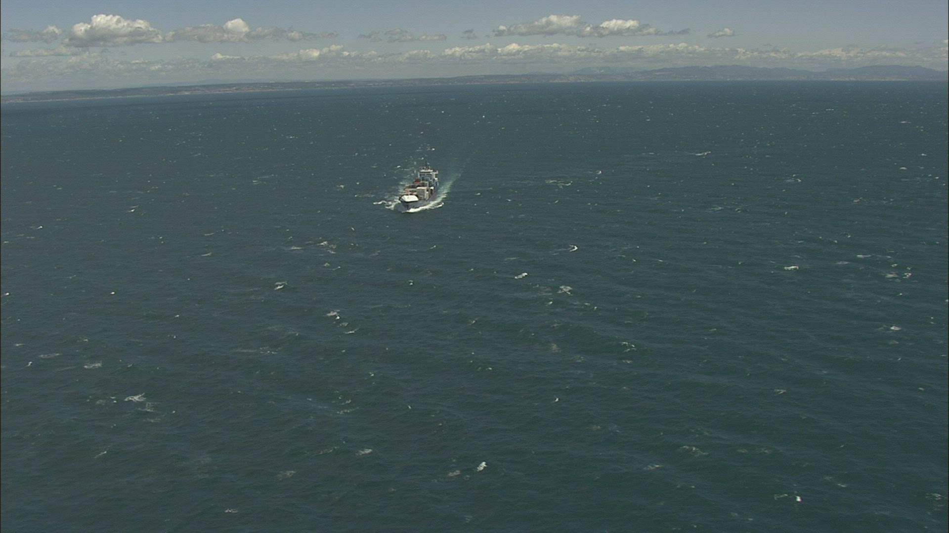 > Aerial View of Ship Which Tows a Boat in Sea Bay