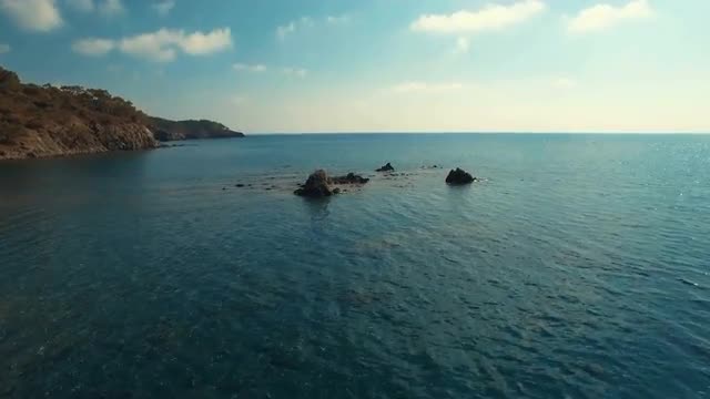 Aerial View of the Tropical Coast with Dense Forest and the Bay with the Blue Water. Sunny Day, Shot in 4K UHD