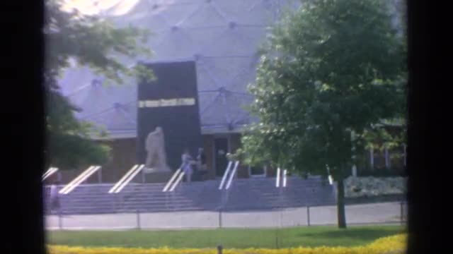 > 1973: people walking among many columns and statues in a valley surrounded by hills MEXICO