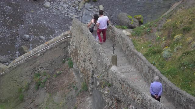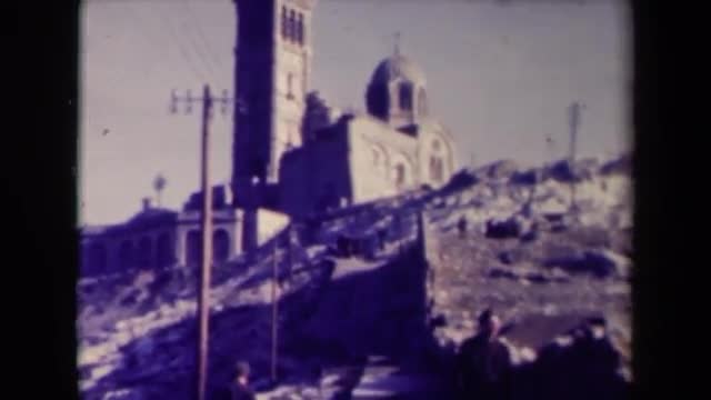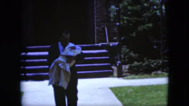 > 1951: grandfather is walking down the steps from church carrying a baby in a blanket CLEVELAND, OHIO