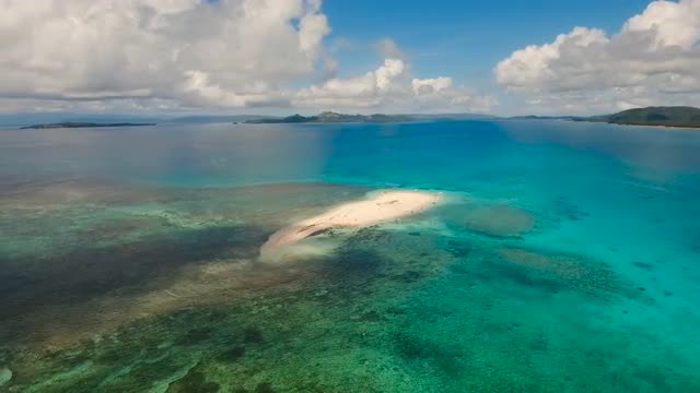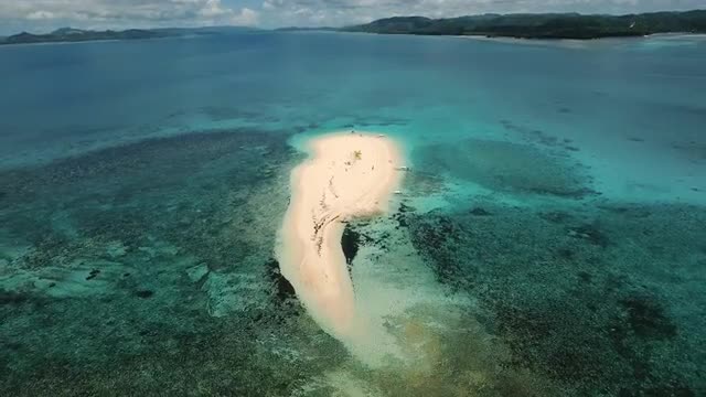 > 1967: tourists moving about on a beautiful ocean beach with palm trees HAWAII