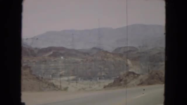 1967: a car driving down the highway with rugged , rocky mountains on either side ARIZONA