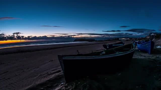 650456 - Sunset Boat Beach Timelapse 4k