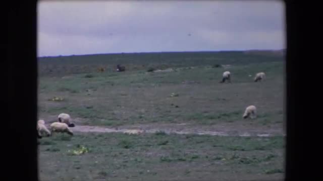 > 1971: a shepherd is watching intently over a flock of sheep grazing on a hillside ALGERIA