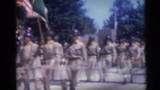 1967: beefeater soldiers marching and standing in formation in front of building with white columns