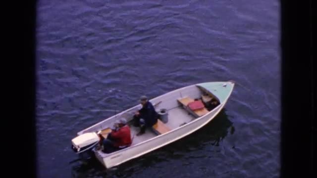 > 1964: two people driving a small boat in still water seems to be fishing with his friends NIAGARA FA