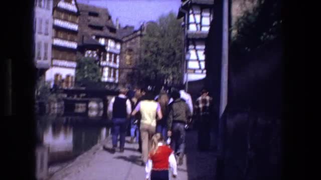 > 1970: a young girl walking near a river in a town STRASBOURG FRANCE