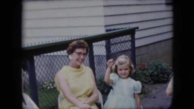 > 1969: little girl waves to the camera near family CALIFORNIA
