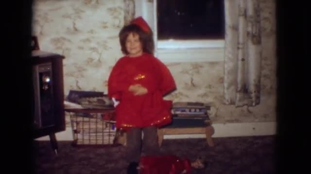 > 1965: little girl in red costume practices for performance NEW JERSEY