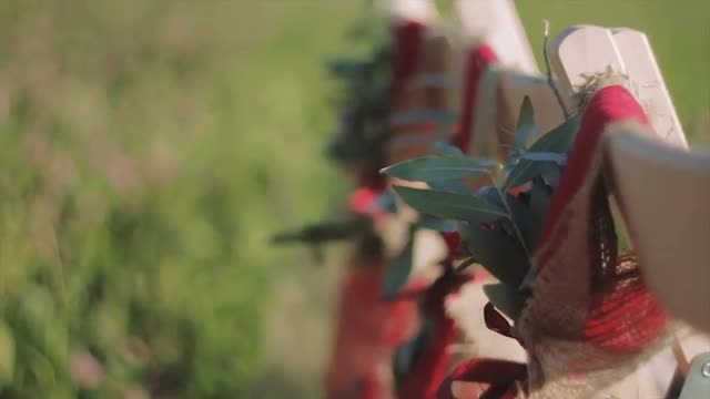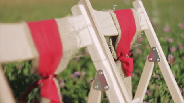 in the Meadow Among the Flowers Are on the Chairs Which Waving in the Wind Ribbons