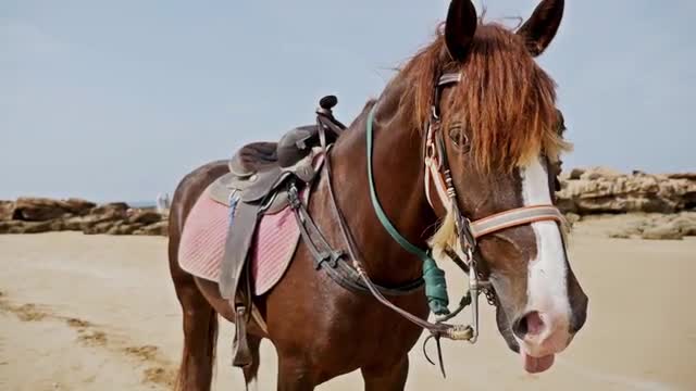 A horse on the beach in Morocco. Slow motion footage in full hd.