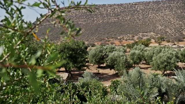 Garden view, full of argan trees and palms.