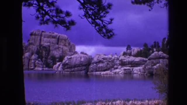 > 1974: scenic place with blue sparkling lake in the lap of mountain SOUTH DAKOTA