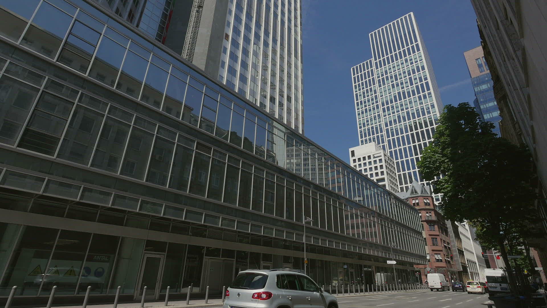 > 1974: vehicles running on the highway in a city with skyscrapers VAIL COLORADO