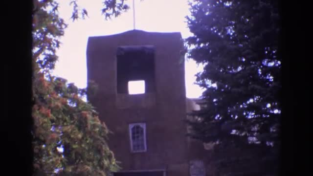 > 1973: an old stone church tower, seen at daytime NEW MEXICO