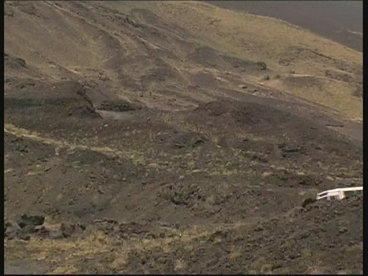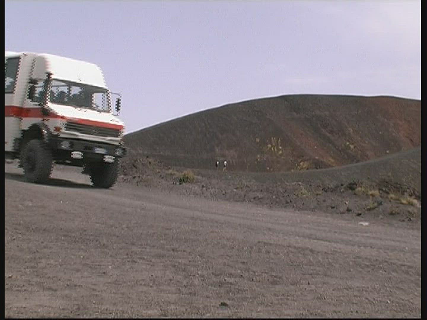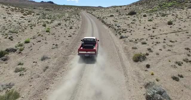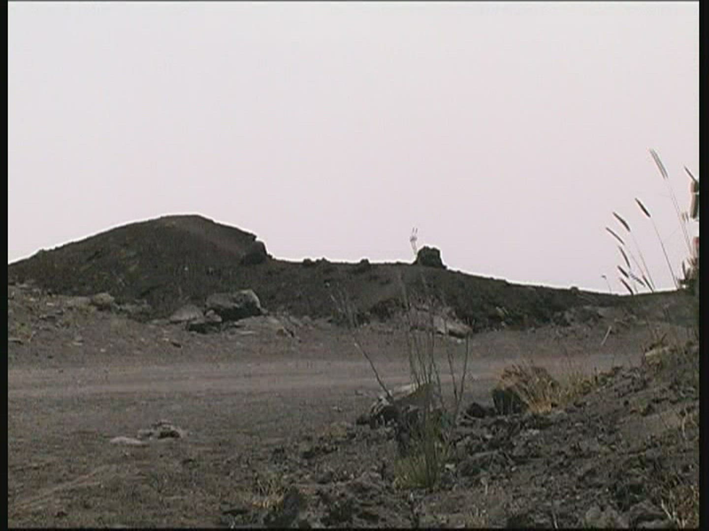 > 1968: traveling on a dirt road out of a rock walled canyon or tunnel into a mountain forest of green