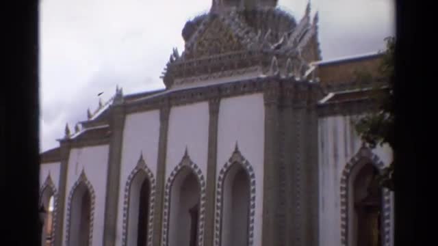 1969: spires top an old building with mounted statues and lower-level windows protected with iron ca