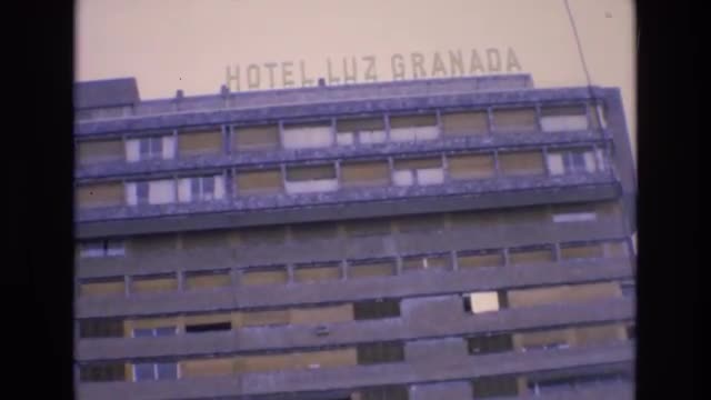 > 1969: exterior of the hotel luz granada, spain, in the 1970s with cars & people around its porti