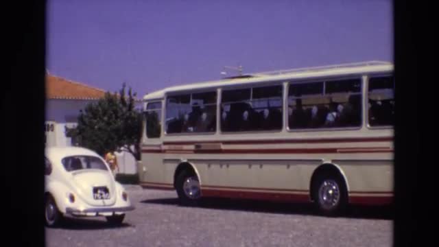 1972: a bus that is parked next a punch buggy car PORTUGAL