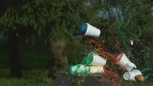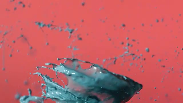 Tornado of blue paint rising against an orange background in slow motion.