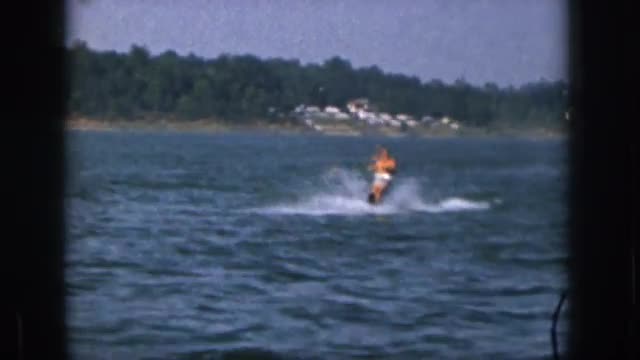 > 1961: man water skiing making waves on the lake on a nice hot summer day MICHIGAN