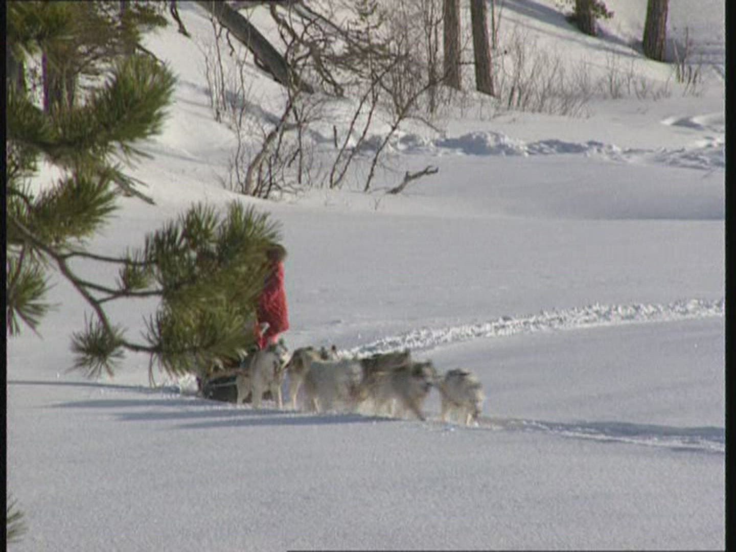 > 1975: a woman and a dog running along a trail through the woods BAXTER MAINE