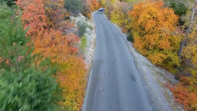 > 1967: a car drives on a road surrounded by trees. PARIS FRANCE