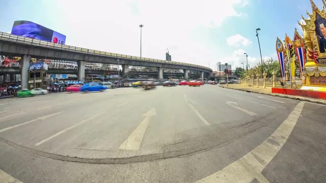 > 1967: many cars moving through a busy intersection in the city with buildings in the background PARI