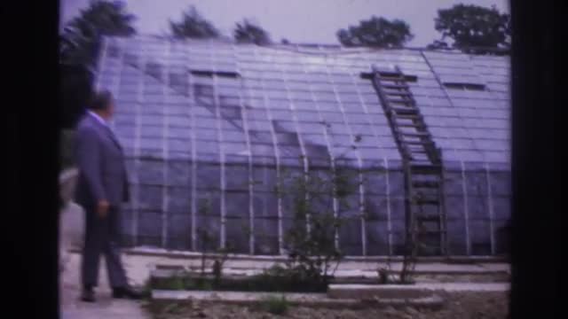 > 1967: family talking outside by the greenhouse. PARIS FRANCE