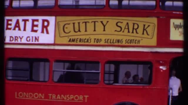 > 1967: passengers are boarding a modern double decker bus PARIS FRANCE