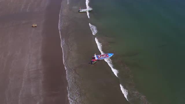 Fisherman and a Couple Rest at a Sea Coast Line Time Lapse