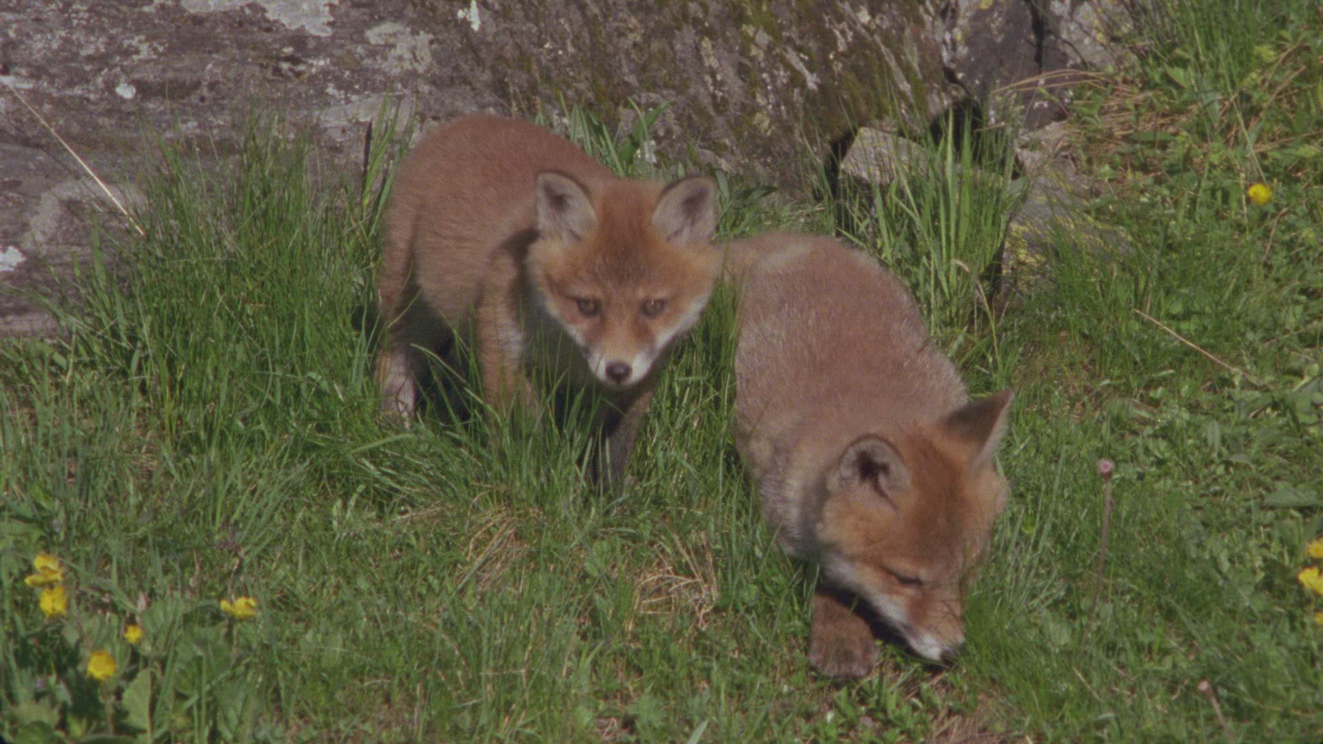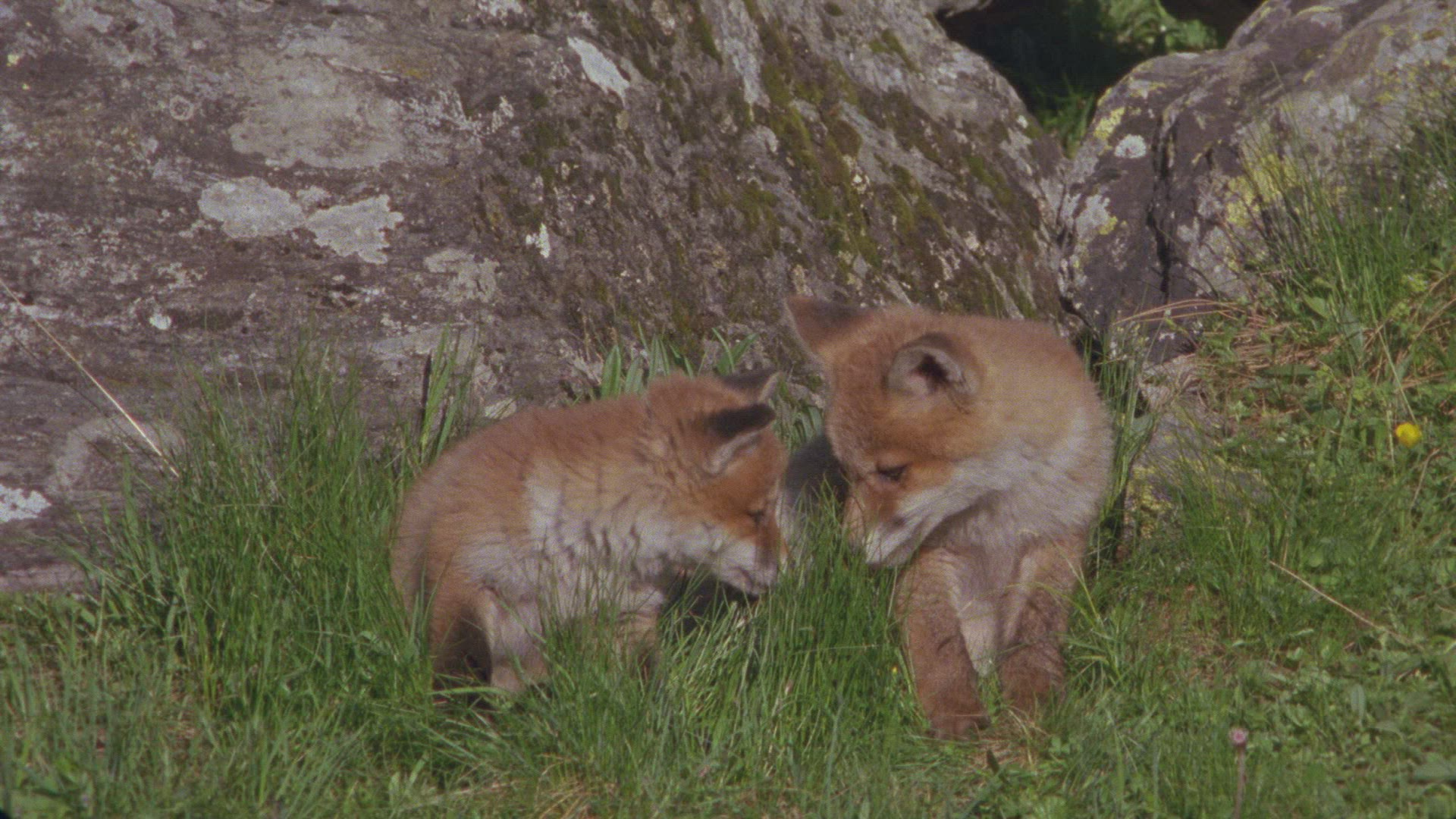 > 1962: two black puppies lying on grass someone playing teasing cute fluffy YORBA LINDA CALIFORNIA
