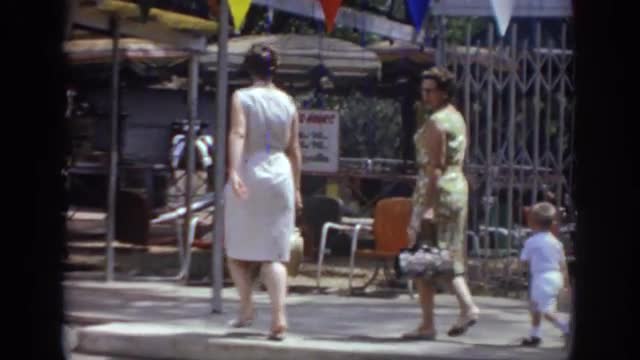 1966: women walking with dresses with a child busy area SACRAMENTO CALIFORNIA