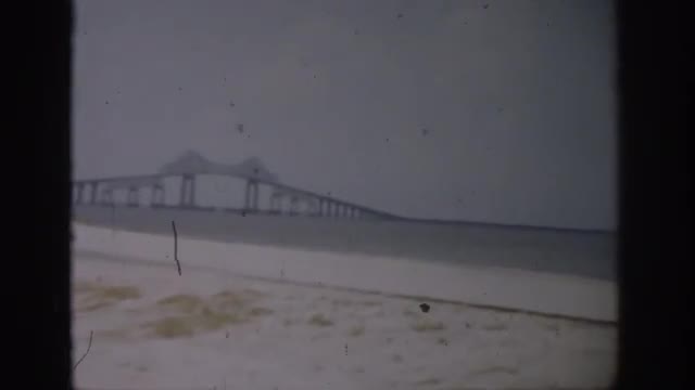 > 1959: ocean waves and view of beach and a bridge FLORIDA