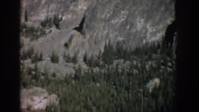 1959: panning of mountains and trees during a nice, bright day in nature COLORADO