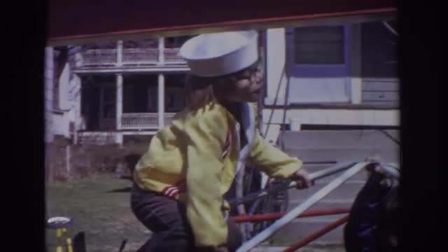 > 1973: caucasian child in white sailor hat playing jungle jim PHILADELPHIA PENNSYLVANIA