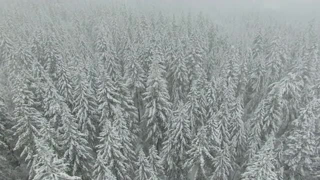 Aerial shot winter forest in Oregon