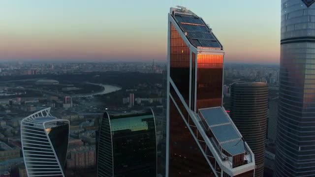 Seattle downtown waterfront from the docks. Sun rising over frozen reflective pool of water.