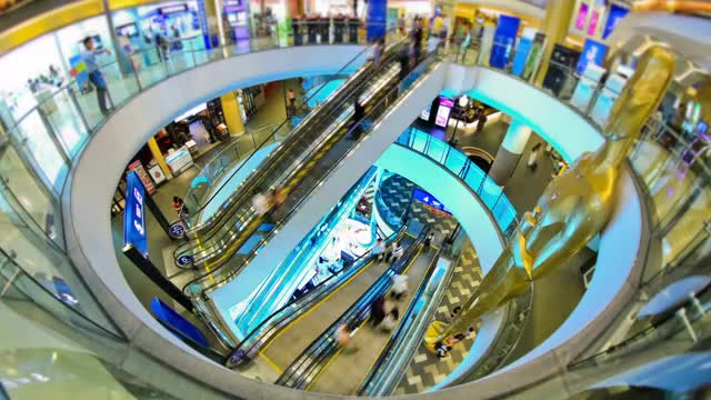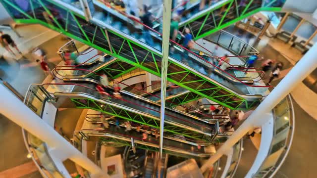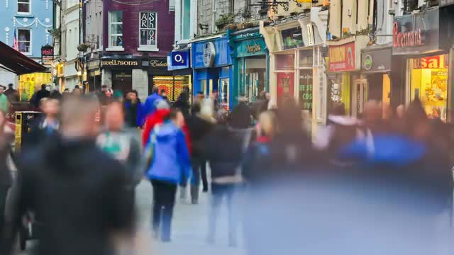 People rush to their shopping, employment and home destinations as a young girl attempts to speak her political views.