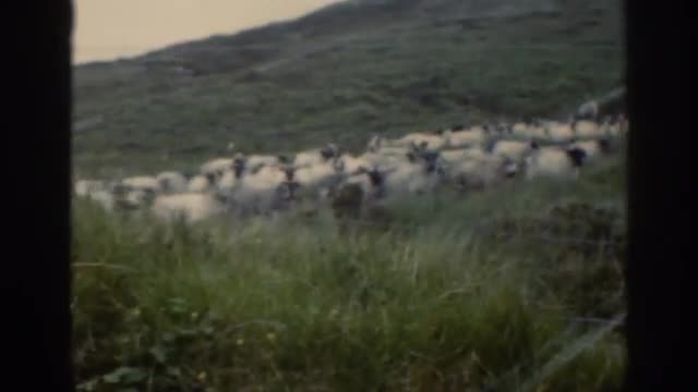 > 1961: a large flock of sheep in the hilly countryside IRELAND