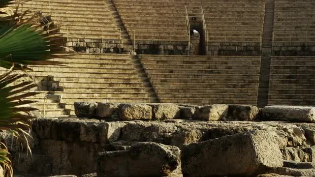 > 1976: the ruins of an amphitheater in an ancient roman city ISRAEL