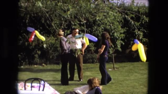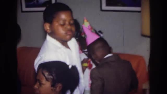 > 1975: birthday party of children enjoying the festivities, dancing around and getting into the groov