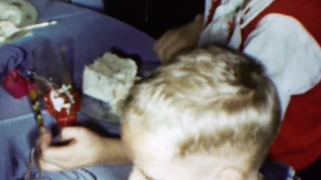1975: birthday party of children enjoying the festivities, dancing around and getting into the groov